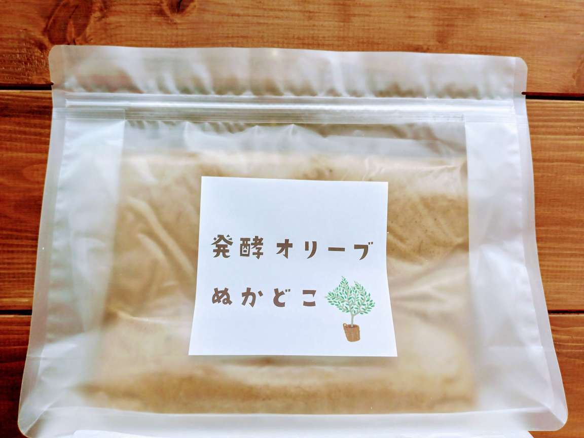 九州産の農薬不使用オリーブからとれた果汁を使ったぬかどこです。